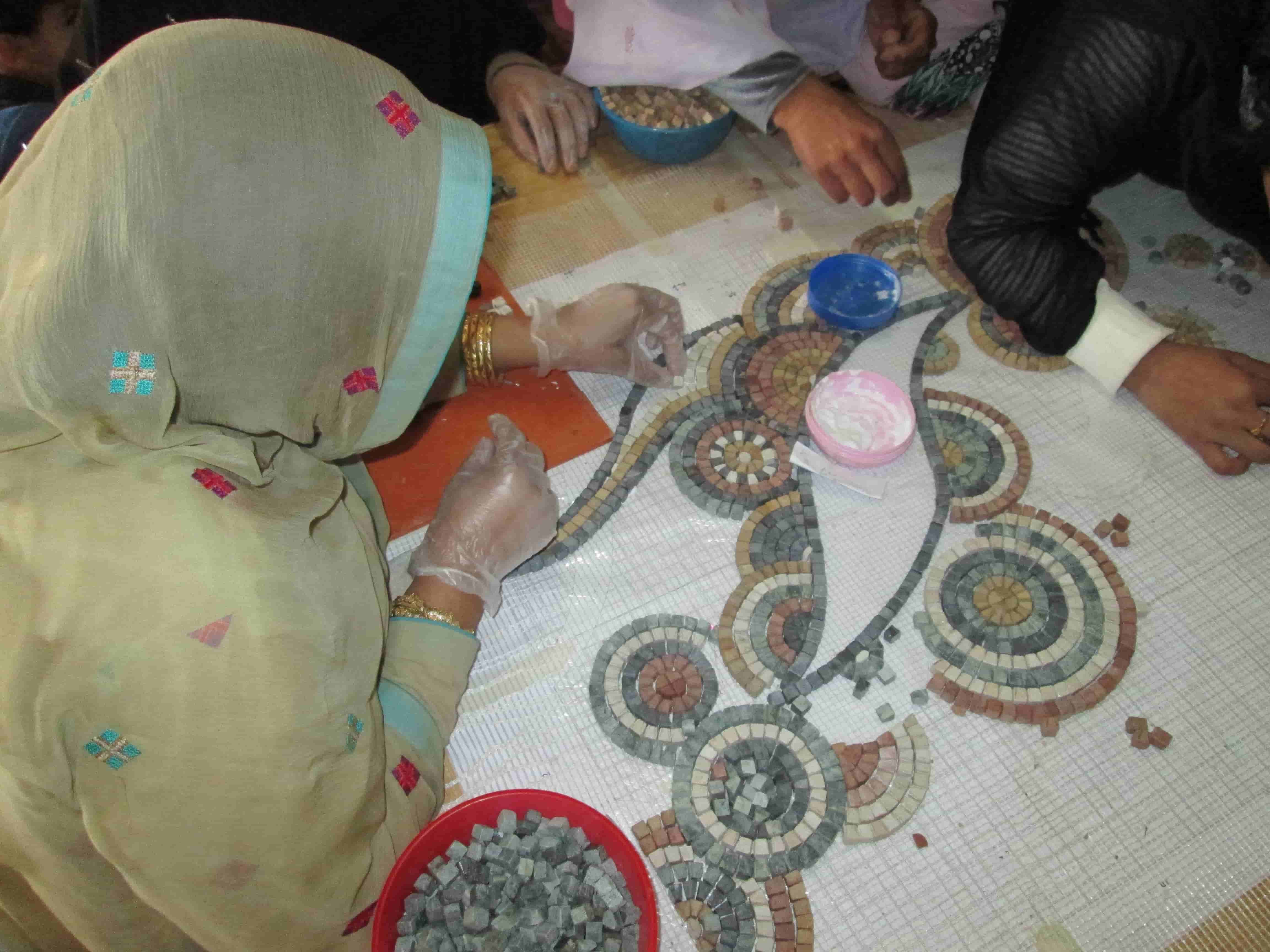 Females are trained on Mosaic, Inlay and Handicraft designing, making and marketing with the vision to eradicate poverty, upgrading the value chain and improving females’ status. PASDEC has already conducted various training projects independently and jointly with various donor organizations. The success of these projects highlighted the need to bring more cohesion and competitiveness in Mosaic, Inlay and Handicrafts subsector. PASDEC has conducted training of 1262 female on Mosaic, inlay and handicraft making. The company has completed a project for training of 560 woman of Mosaic inlay and Handicraft with the collaboration of GIZ under the CREW (Creative Entrepreneurship for Women) project.
